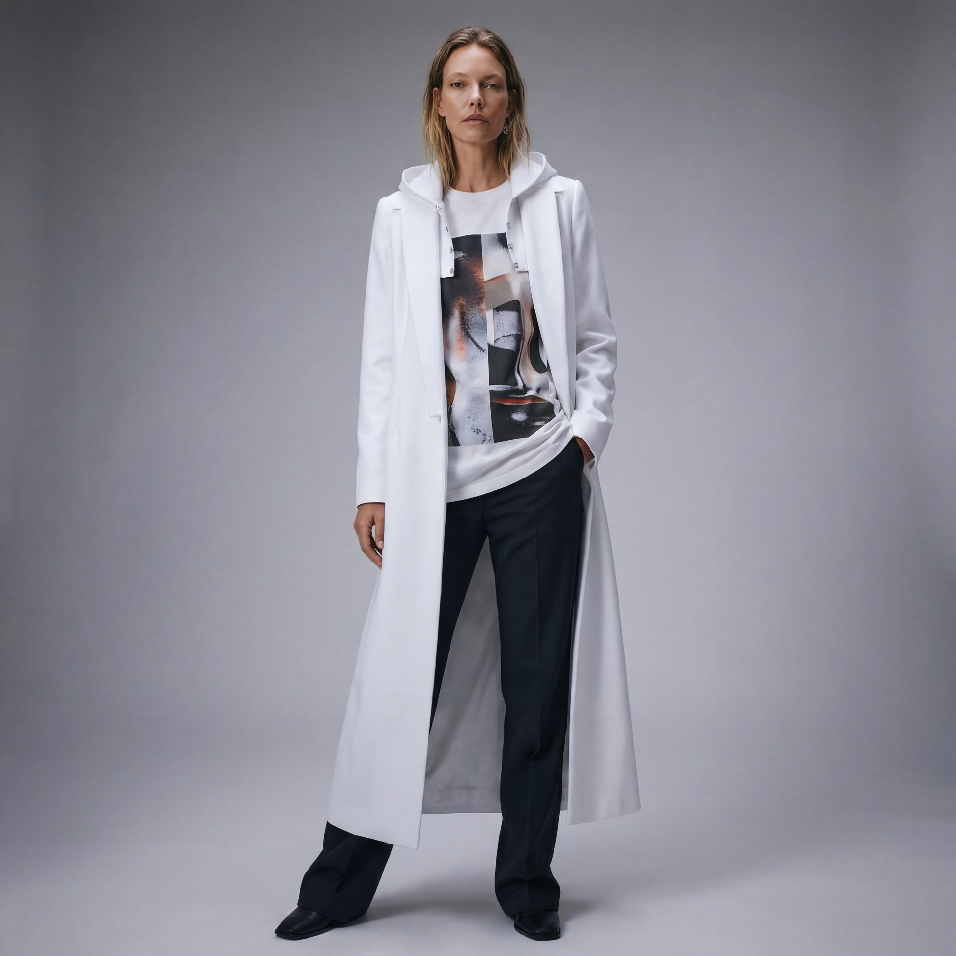 HOODED FLOOR LENGTH COAT