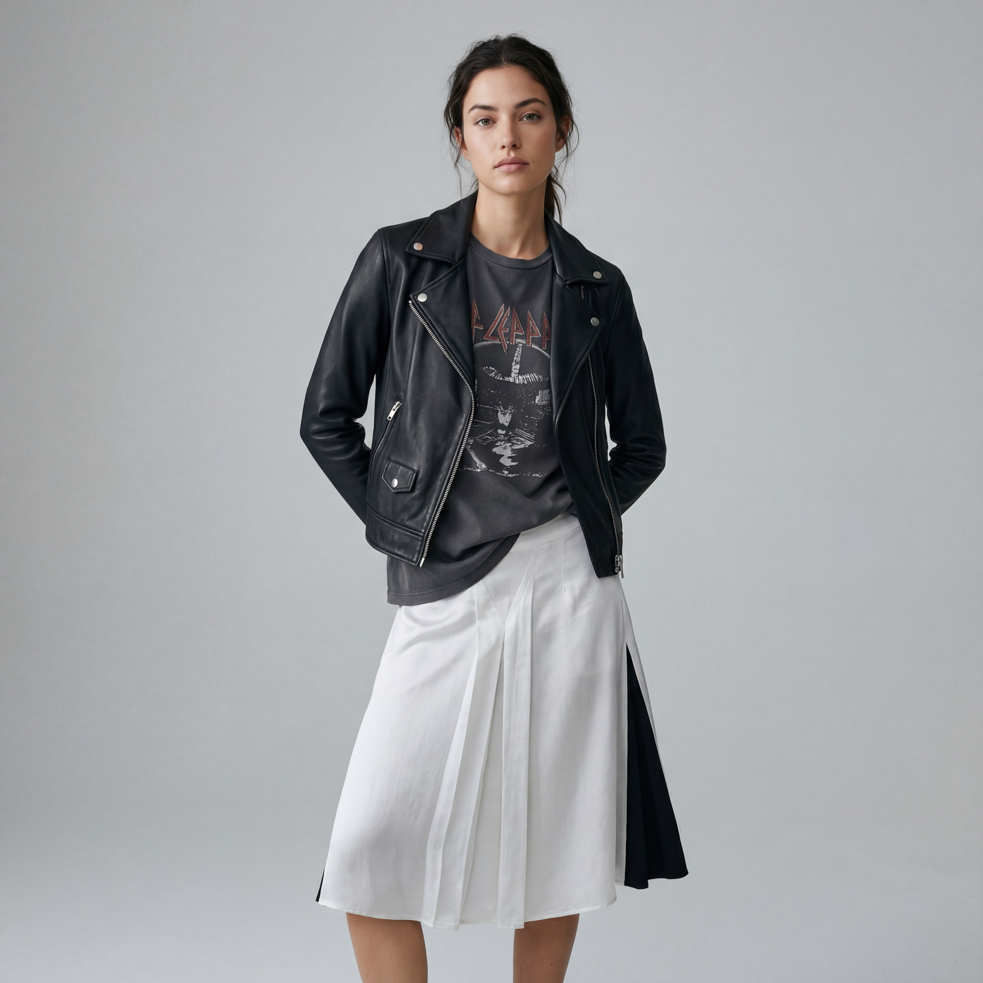 MIXED MEDIA CENTER PLEAT SKIRT