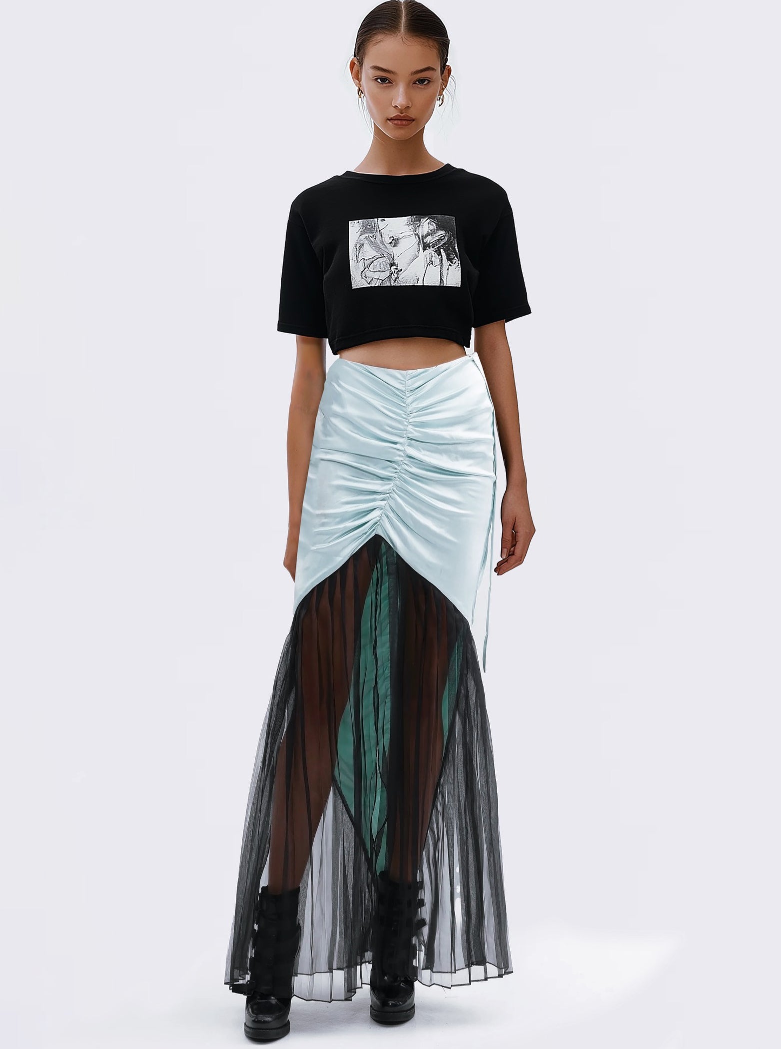 MIXED MEDIA ROUCHED FLOOR LENGHT SKIRT - Borrow