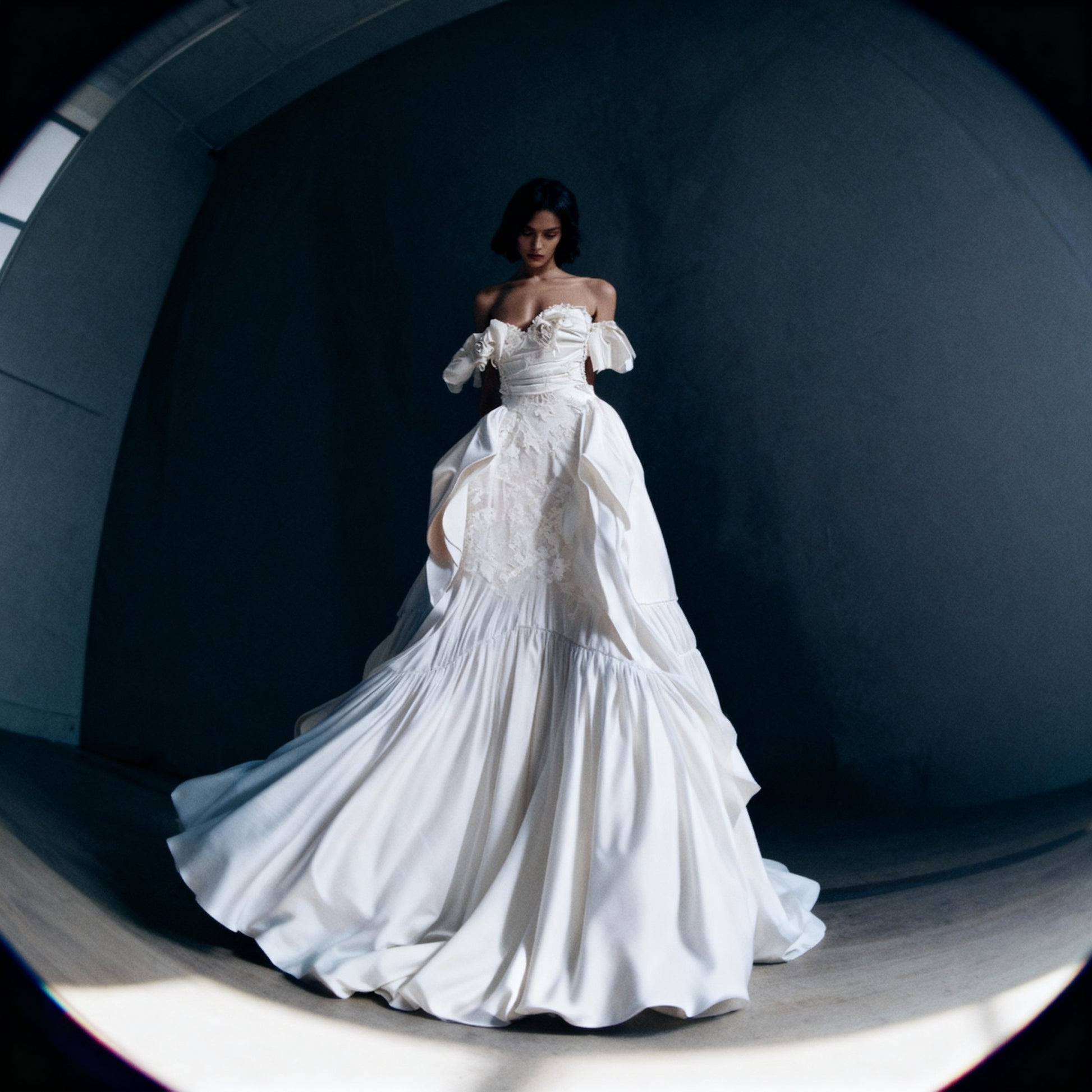 This gown is made-to-order and represents a core silhouette from the Midnight Reverie collection. Each piece is constructed individually within our private New York atelier and may be customized per client during consultation. Gown images shown are reference points — final fabrications, structure, and design modifications are developed in conversation with the bride.