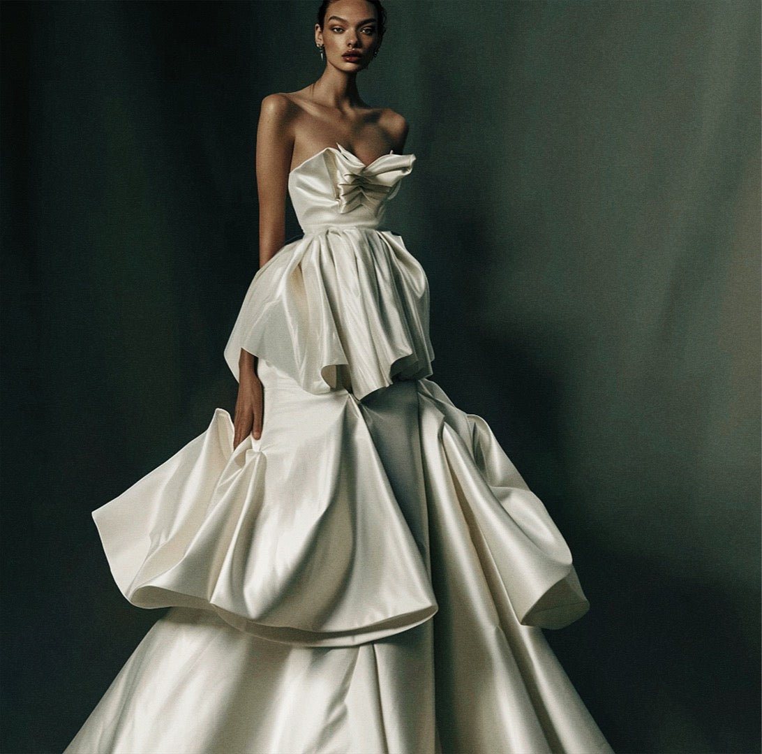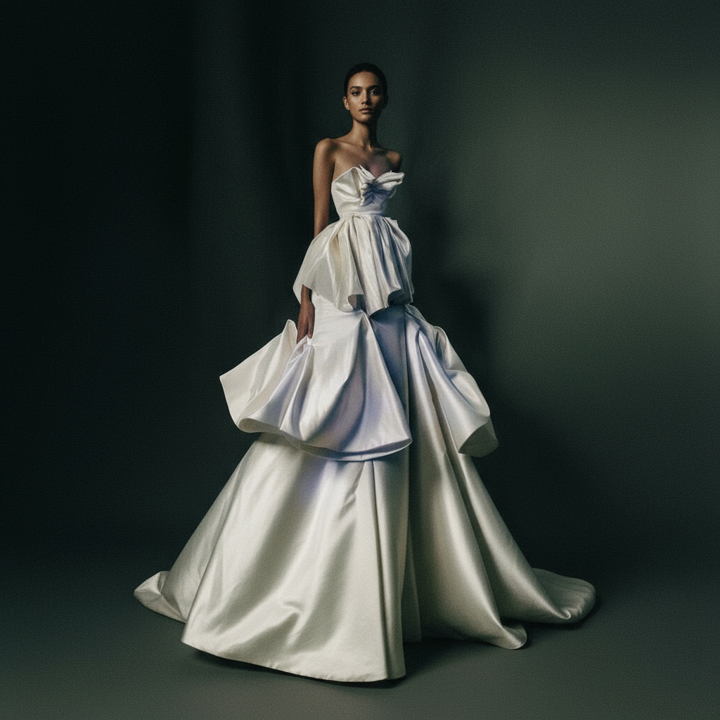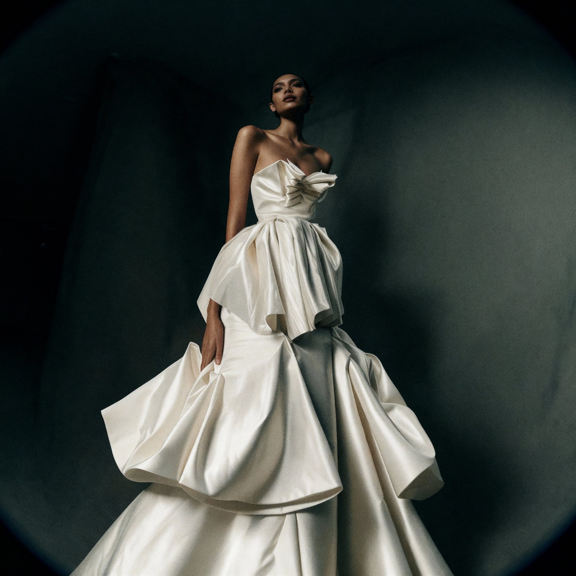 This gown is made-to-order and represents a core silhouette from the Midnight Reverie collection. Each piece is constructed individually within our private New York atelier and may be customized per client during consultation. Gown images shown are reference points — final fabrications, structure, and design modifications are developed in conversation with the bride.