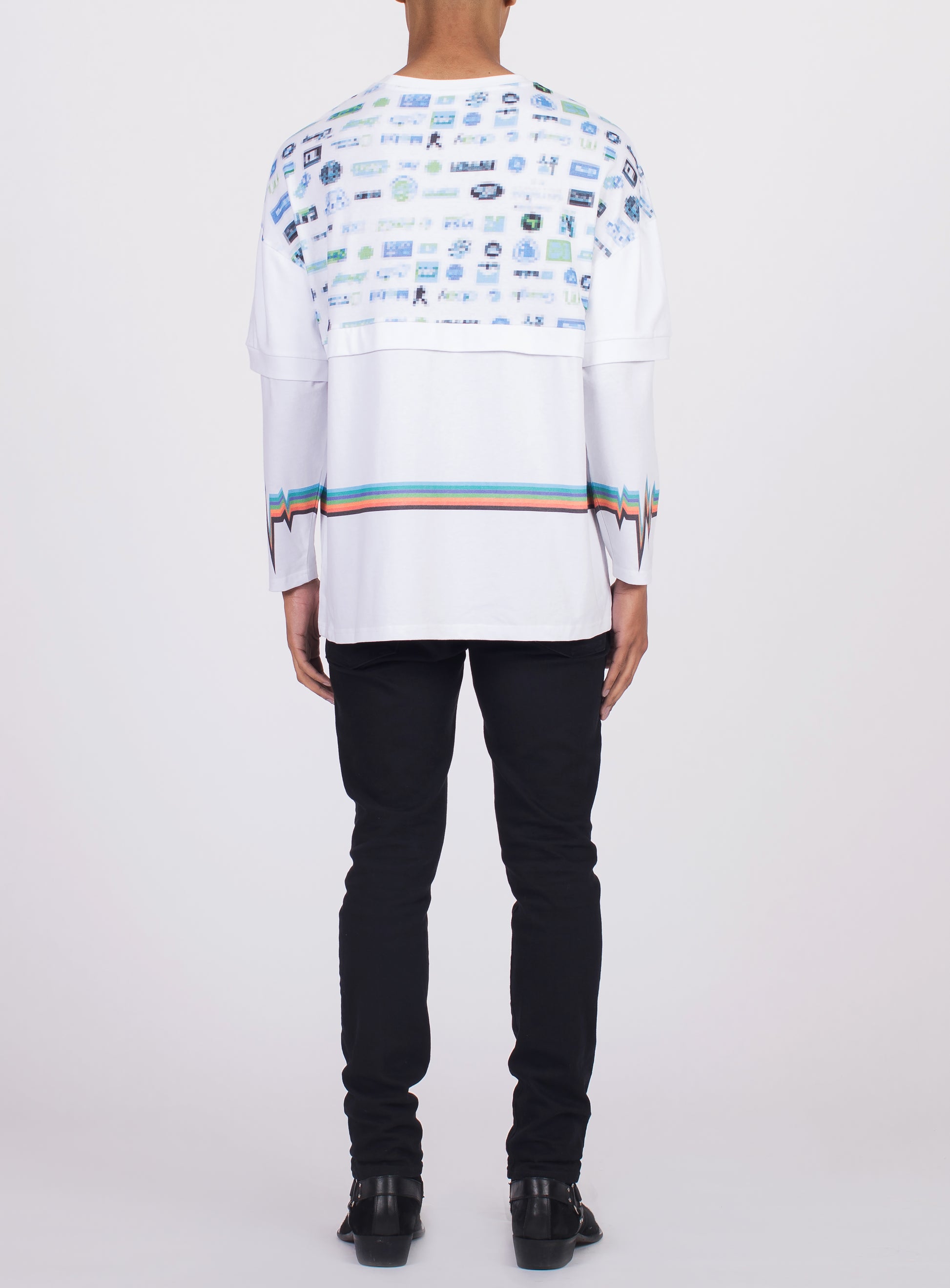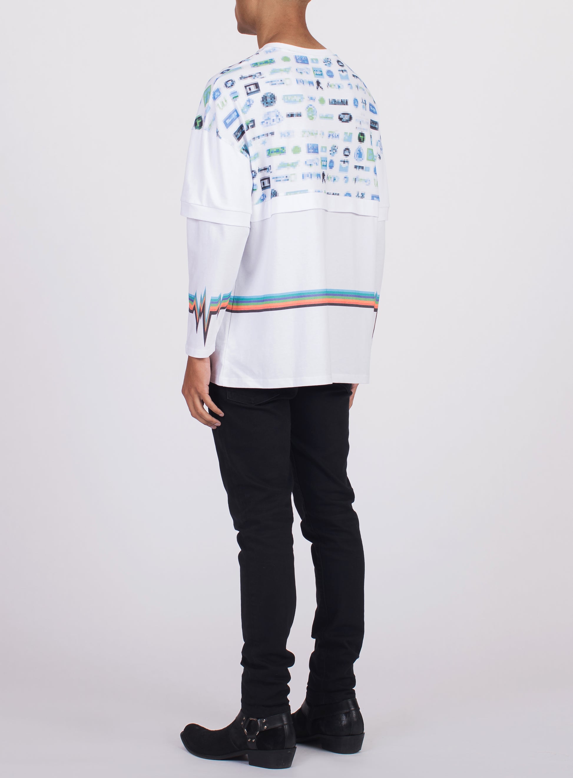 - This luxe cotton jersey Long Sleeve Tee Shirt showcases the collections focus on both the angel graphic, and pixel graphic. The lifeline graphic continuing around the body and aligning with the lower sleeve makes this piece upmarket. Cut in an oversized fit from mid weight cotton, this silhouette paired with the graphics makes this piece a must have. This garment meets the highest demands and aligns with Abel Honor’s standards.