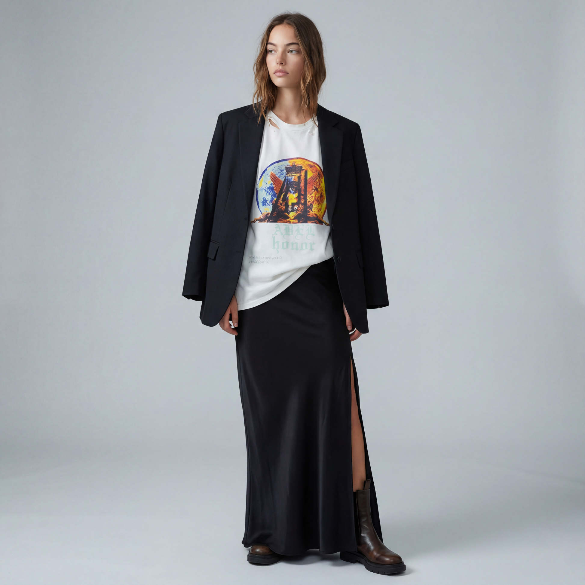 •This short sleeve distressed tee spotlights the season’s new graphic signature. Tailored in a regular fit from lightweight cotton jersey, the screen print at the front of the garment features our Abel Angel with a masquerade mask symbolizing mystery and seduction. At the angels forefront, you will see lion statues representing respect. The lion remains true to itself as a symbol of honor and power. All motifs characterize the Abel Honor ideals.
